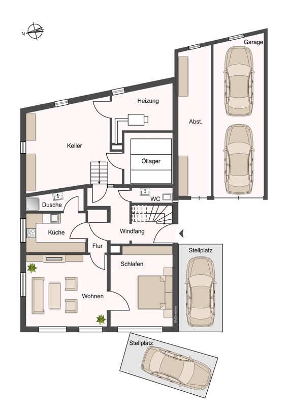 Das Mehrfamilienhaus ist wie folgt aufgeteilt: