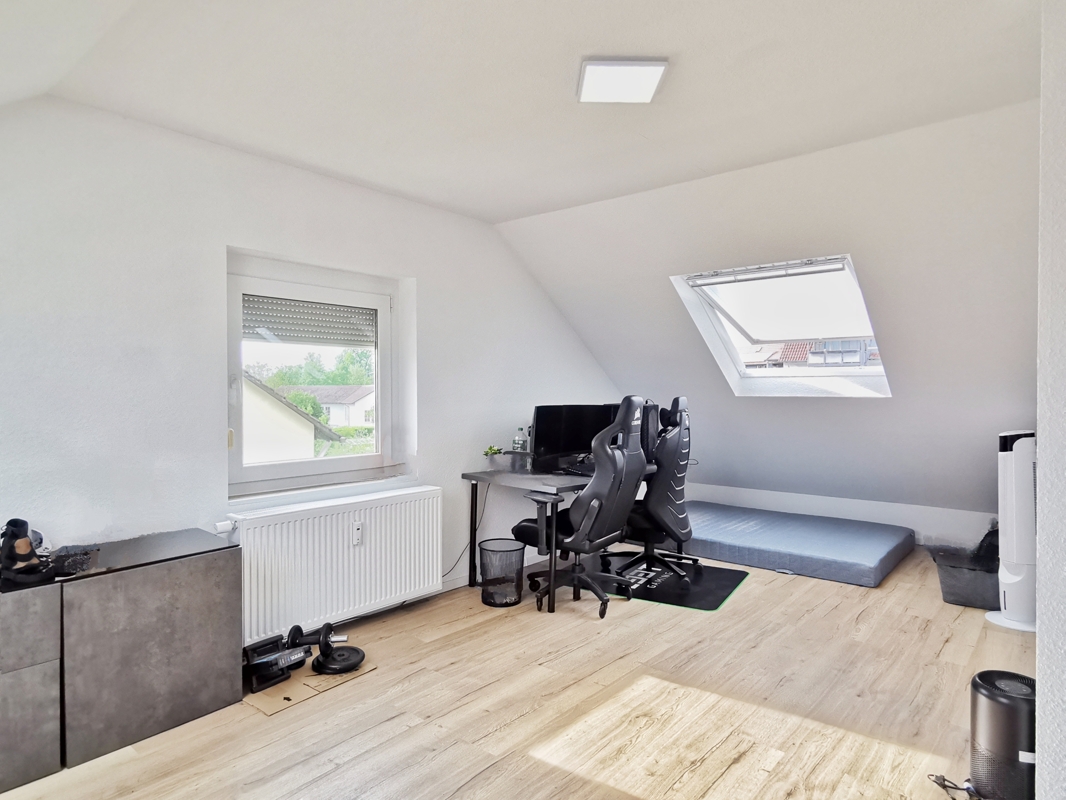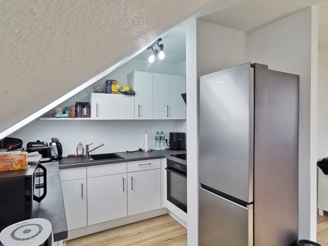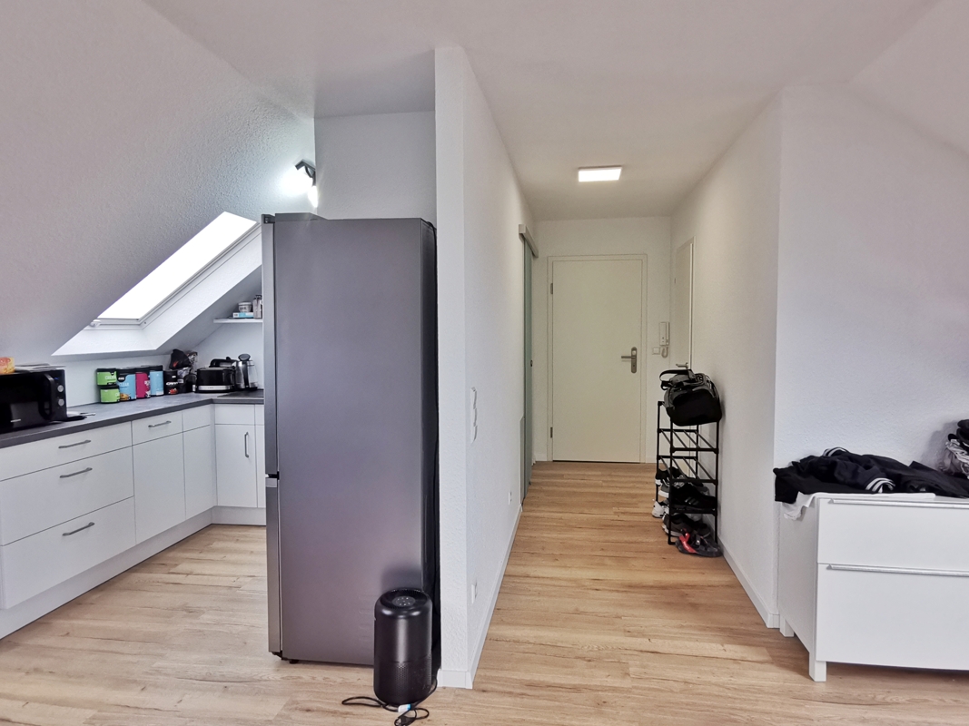 Die Wohnung wurde im Jahr 2023 komplett neu im Dachgeschoss eingebaut und befindet sich in einem sehr guten und neuwertigen Zustand. Beim Ausbau wurde die gesamte Wohnung an Wänden und Decken (einschließlich des Dachbereichs) aufwendig gedämmt, was ein angenehmes Raumklima sowie niedrige Energiekosten garantiert. Die Dachfenster wurden ebenfalls neu eingebaut und verfügen über Sichtschutz-Plissees und Verdunklungsrollos.