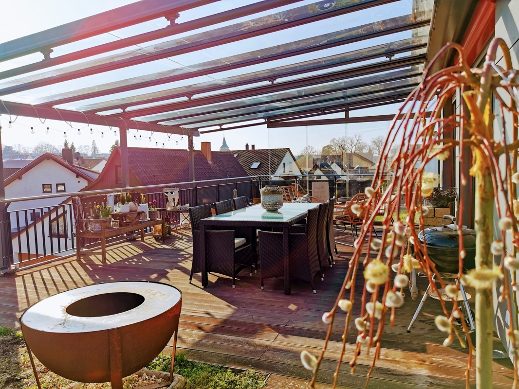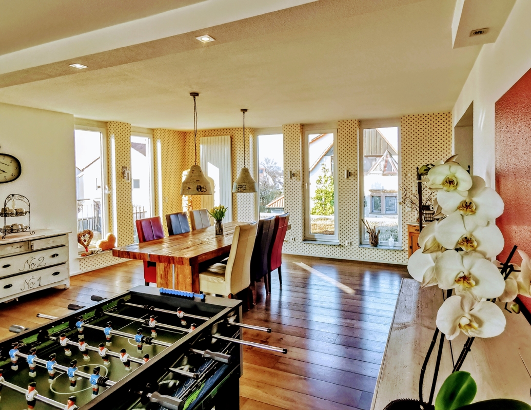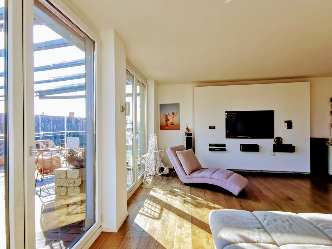 Die Erweiterung dieser traumhaften Wohnung in ein beeindruckendes Penthouse im Jahr 2008 war mehr als nur eine Renovierung - sie markiert einen Wendepunkt in der Geschichte dieses Hauses. Das ehemalige Flachdach wurde dabei grundlegend erneuert, um Platz zu schaffen für ein ca. 70 m² großes, atemberaubendes Wohn- und Esszimmer das die Herzen höher schlagen lässt sowie eine Dachterrasse, die sich nach Süden und Westen erstreckt. Sie laden dazu ein, jeden Moment zu genießen.