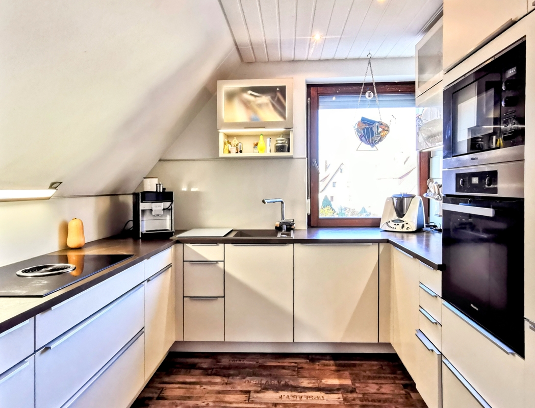 Die Küche, ein Herzstück dieses wunderbaren Zuhauses, wurde 2019 mit Liebe und Sorgfalt ausgestattet. Hochwertige Miele-Geräte, eine Bora Kochfeld-Dunstabzugskombination und sogar versenkbare Steckdosen mit USB-Ladebuchsen sind nur einige der Details, die das Kochen zu einem Vergnügen machen und Ihre kulinarischen Kreationen zum Leben erwecken.