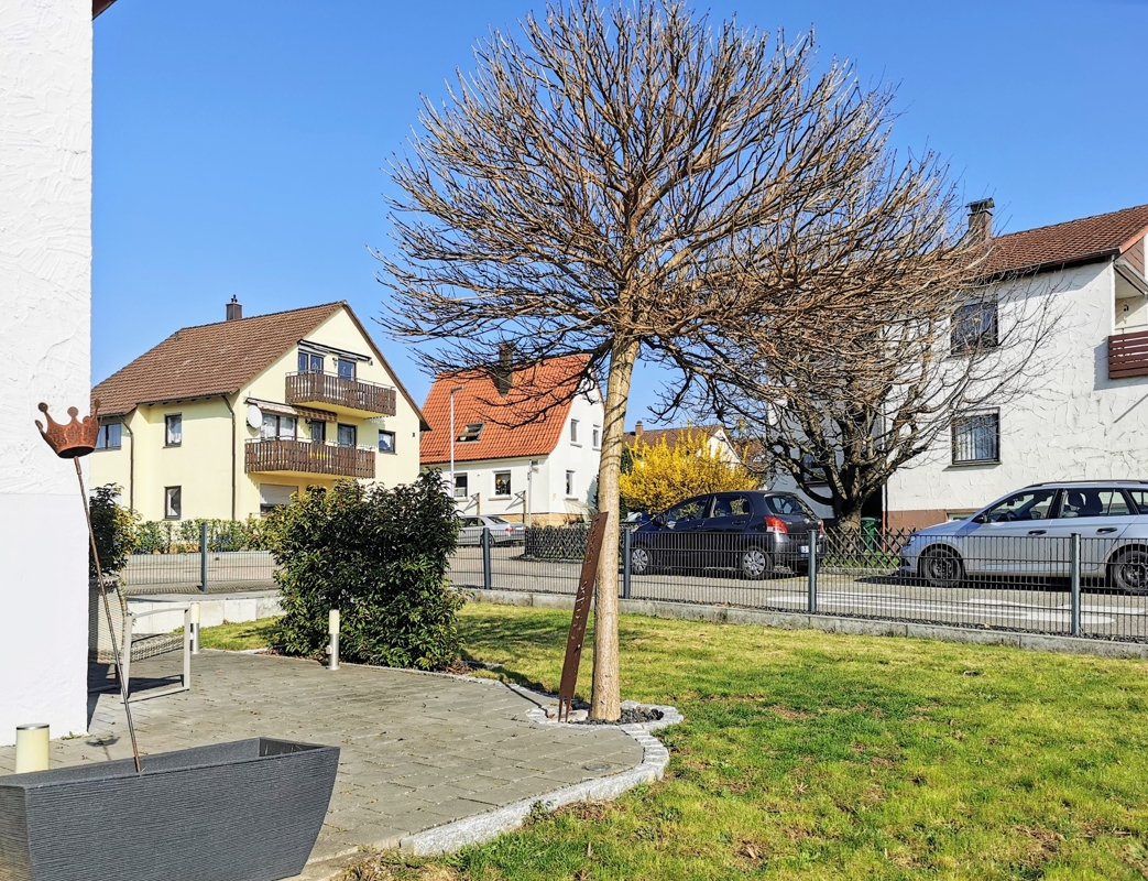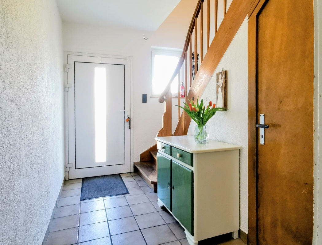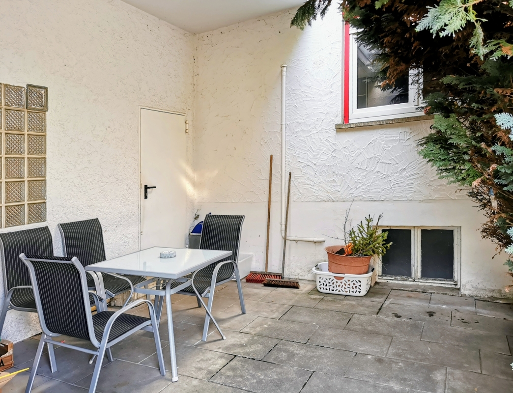 Der neu gestaltete Garten mit seiner praktischen Terrasse vor dem Haus lädt zum Verweilen ein und bietet einen Ort der Ruhe und Entspannung. Hier können Sie die Kinder spielen sehen, während Sie die Schönheit der Natur um sich herum genießen, und sich zugleich im Herzen Ihres Zuhauses geborgen fühlen.