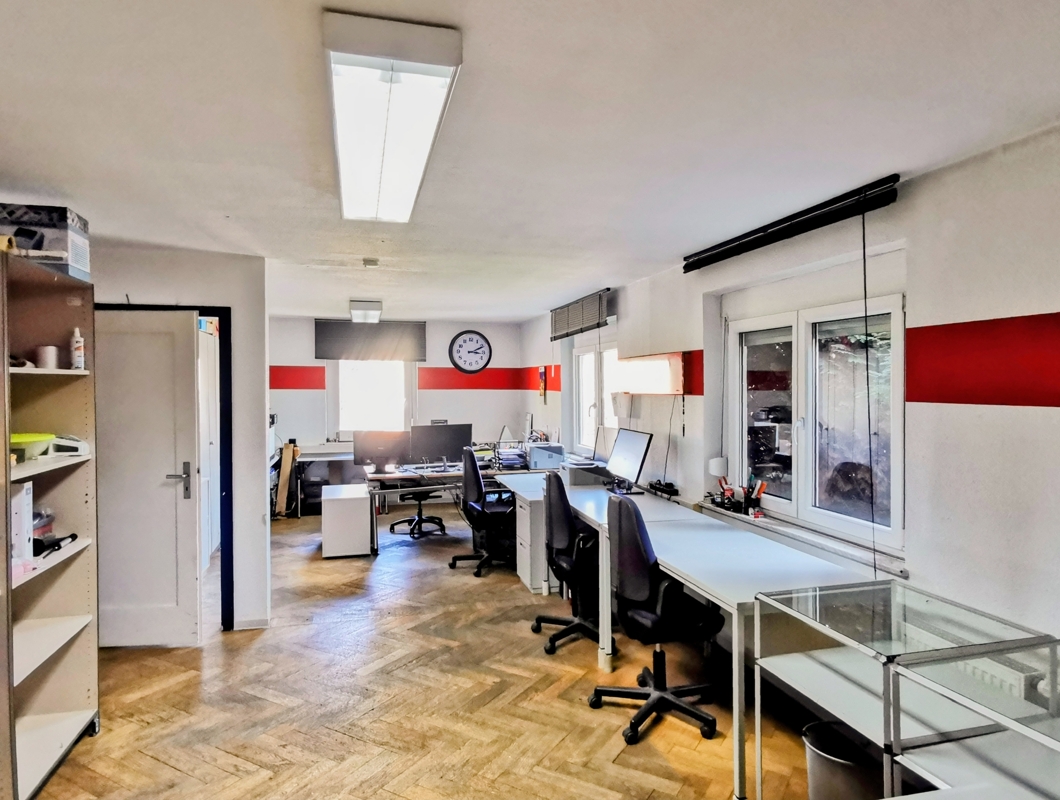 Dieses Wohn- und Geschäftshaus befindet sich in einer guten Wohnlage in Sachsenheim, nur etwa 500 m vom Stadtkern entfernt. Ein großzügiges Angebot an Wohn- und Nutzflächen (Wohnungen, Laden, Büro, Praxis usw.) wartet auf den neuen Eigentümer.Das Anwesen wurde in mehreren Etappen erweitert. Im ursprünglichen Einfamilienhaus befinden sich im Erdgeschoss die Büroräume des Geschäfts. Die darüberliegende Wohnung im 1. OG, ehemals 70 m² groß, wurde im Jahr 2008 großzügig auf der Dachfläche des Ladengeschäfts auf 157,5 m² erweitert. Hier erwartet Sie nun eine repräsentative Penthouse-Wohnung mit einer geräumigen überdachten Dachterrasse. Der ausgebaute Dachboden kann bei Selbstnutzung z.B. als Schlafbereich für 1-2 Kinder genutzt werden.