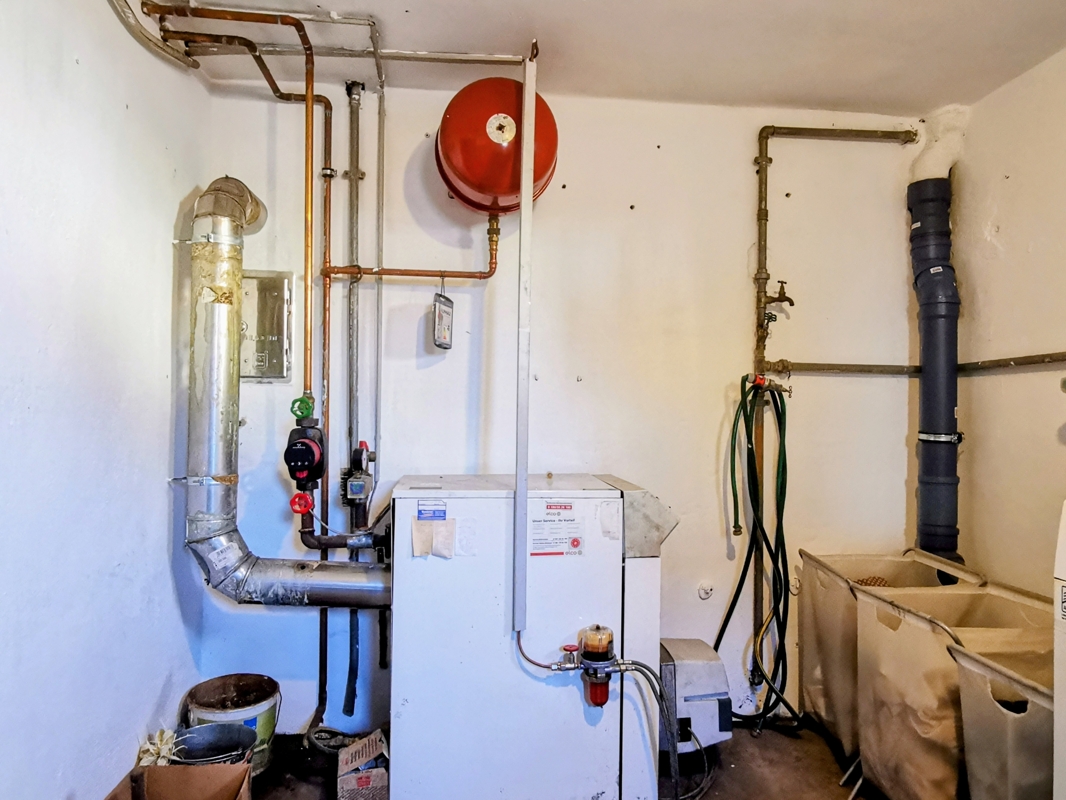 Es handelt sich um eine Öl-Zentralheizung (ELCO Klöckner Typ: Unon 2-25) mit einem Konstanttemperatur-Kessel und einer Leistung von 22-29 kW. Die Anlage wurde im Jahr 2000 erneuert und versorgt das gesamte Anwesen. Heizöltanks sind für 4.000 Liter vorhanden.