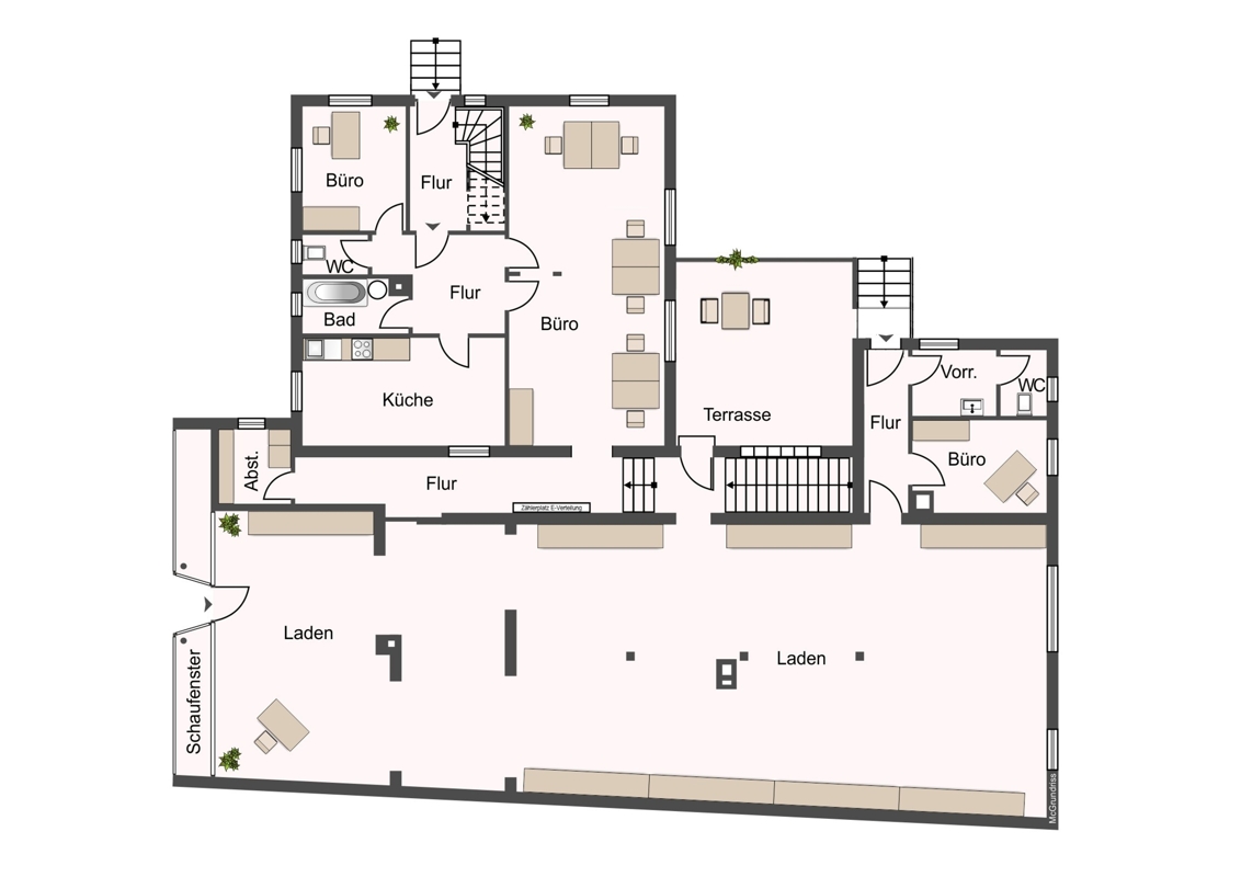 1. Geschäftsräume (Erdgeschoss und Ladenanbau) sowie für