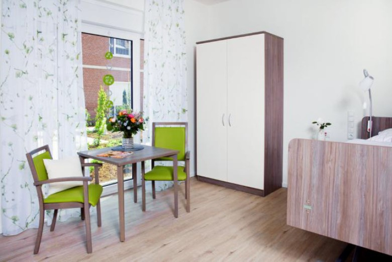 Der moderne Neubau verfügt über insgesamt 77 Pflegeappartements mit 77 Pflegeplätzen. Sämtliche Appartements werden als komfortable und barrierefreie Einzelzimmer gebaut.Alle Bewohnerzimmer verfügen über ein Badezimmer mit Dusche, WC und einem Waschtisch. Jeder Wohngruppe ist ein Gemeinschaftsraum mit Wohnküche zugeordnet. Die Gemeinschaftsräume verfügen jeweils über einen Balkon bzw. Terrasse. Je Etage sind ein Dienstzimmer und diverse Lager- und Abstellräume vorgesehen, sowie ein Pflegebad im Obergeschoss ausgestattet mit Waschtisch, WC, Pflegewanne und Dusche.