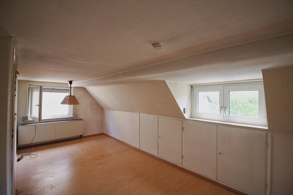 Im Dachgeschoss befindet sich eine Vierzimmerwohnung mit ca. 98 m² Wohnfläche, diese ist komplett sanierungsbedürftig.