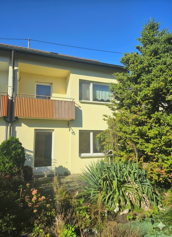 Genießen Sie sonnige Tage auf Ihrer eigenen Terrasse oder dem Balkon – ideale Orte zum Entspannen und Wohlfühlen. Das unterkellerte Haus bietet außerdem nützlichen Stauraum.