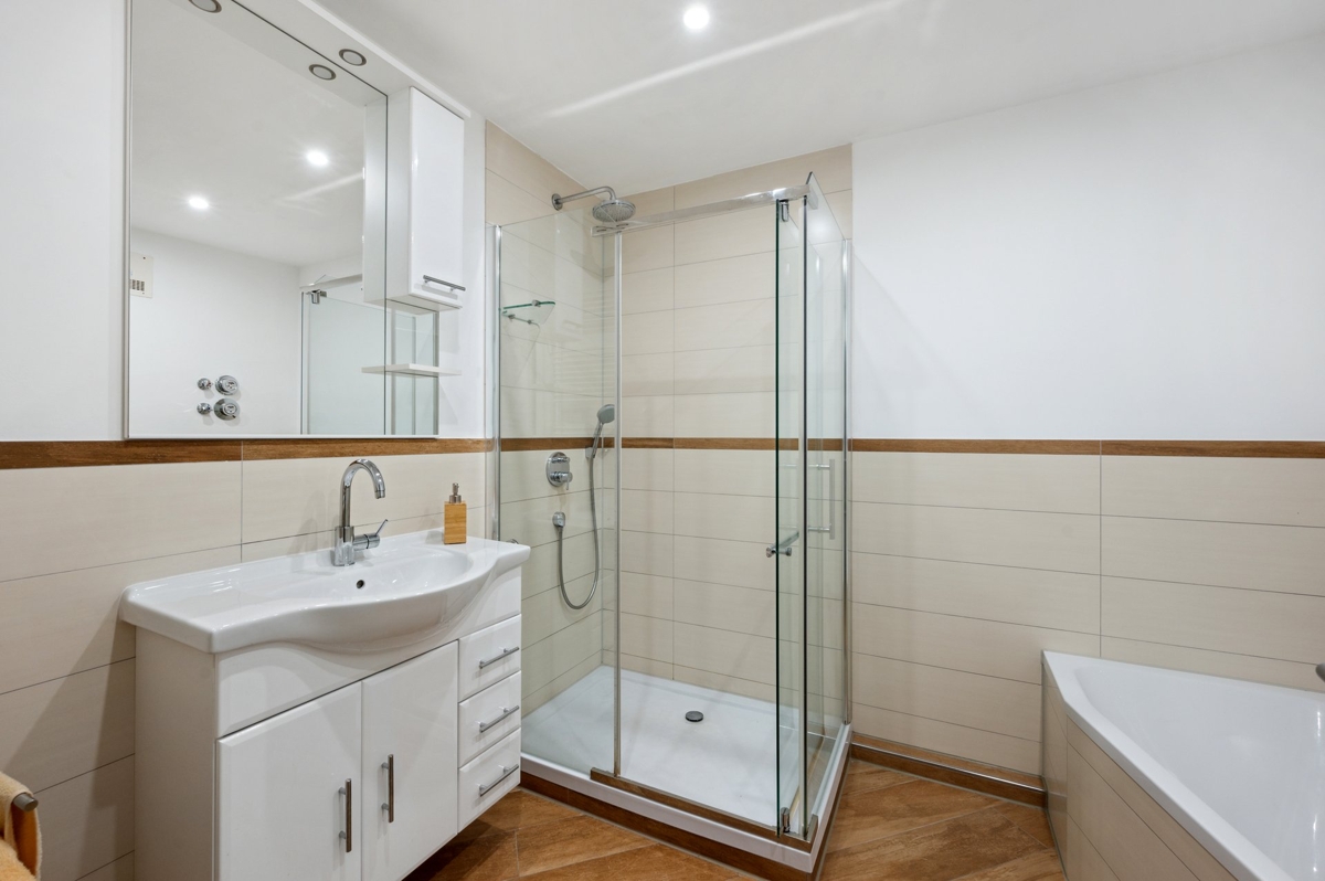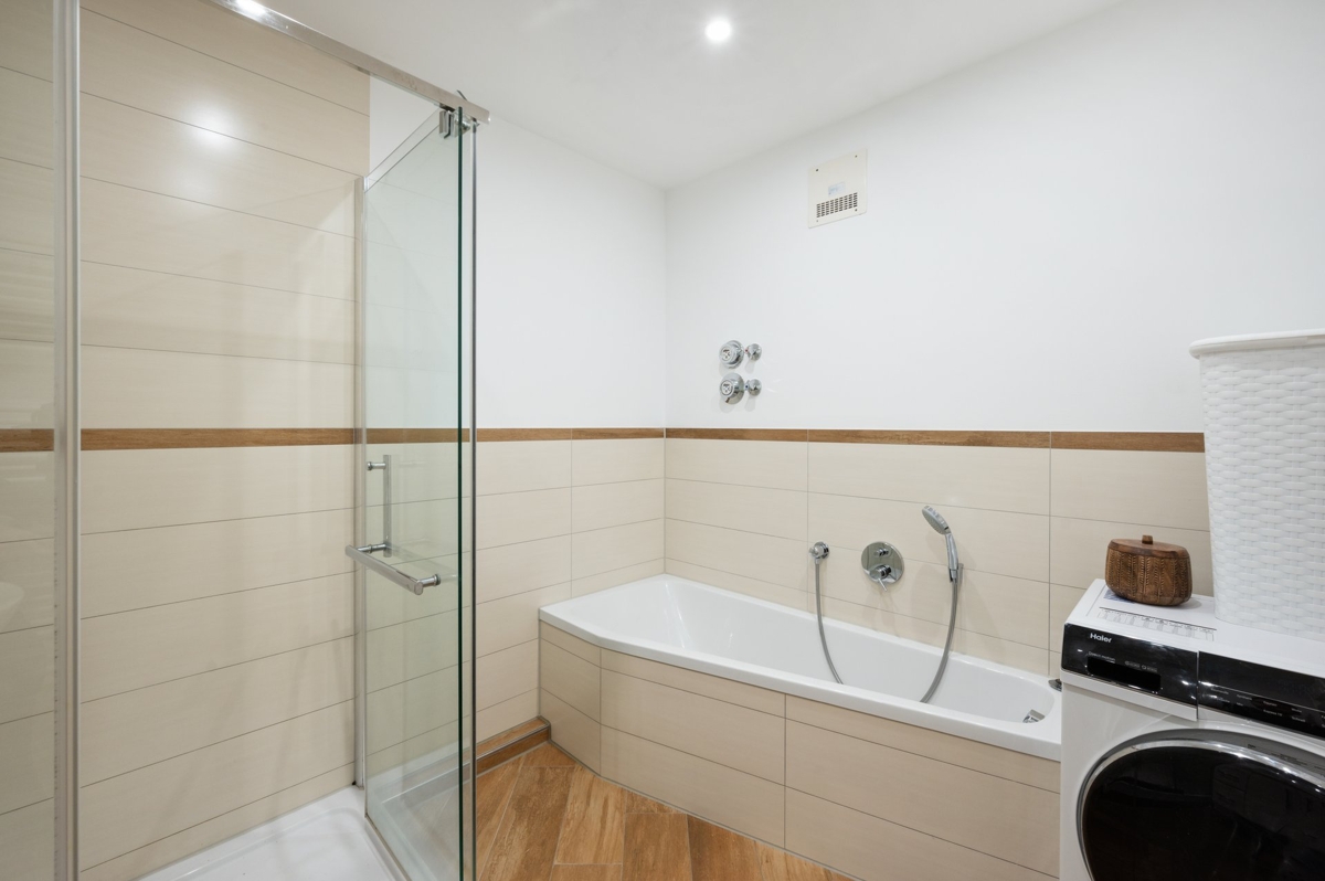 - das Bad welches sowohl eine Dusche als auch eine Badewanne bietet